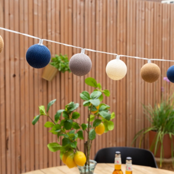 Hang de Cotton Ball Lights buitenlichtslinger in jouw tuin of onder de overkapping en de kleurrijke balletjes creëren direct een gezellige sfeer. Ideaal voor een gezellige zomeravond of tijdens de donkere winterdagen.