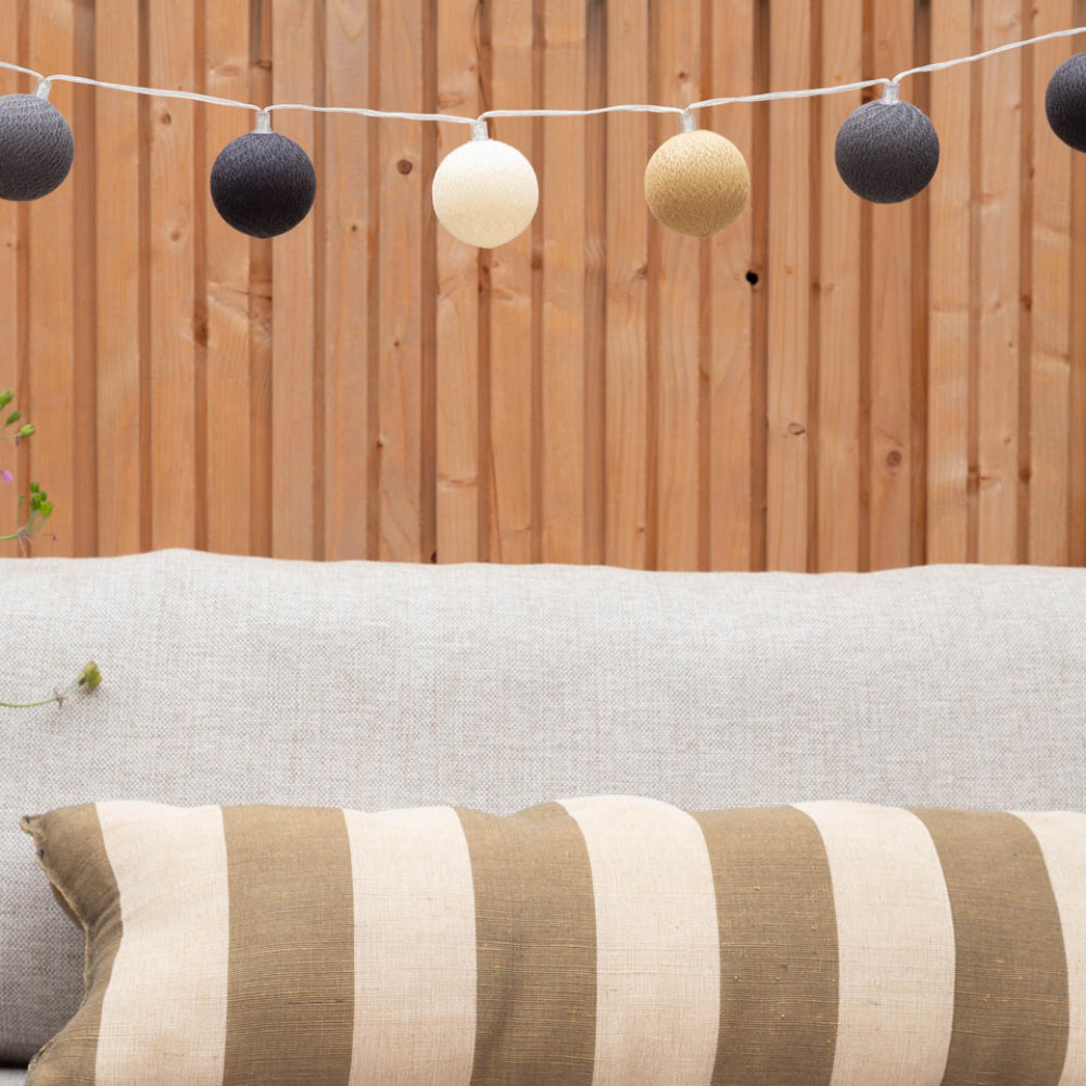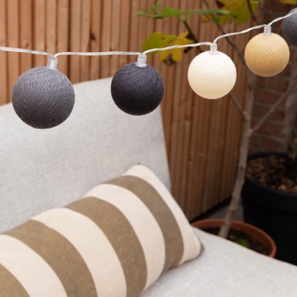 Hang de Cotton Ball Lights buitenlichtslinger in jouw tuin of onder de overkapping en de kleurrijke balletjes creëren direct een gezellige sfeer. Ideaal voor een gezellige zomeravond of tijdens de donkere winterdagen.