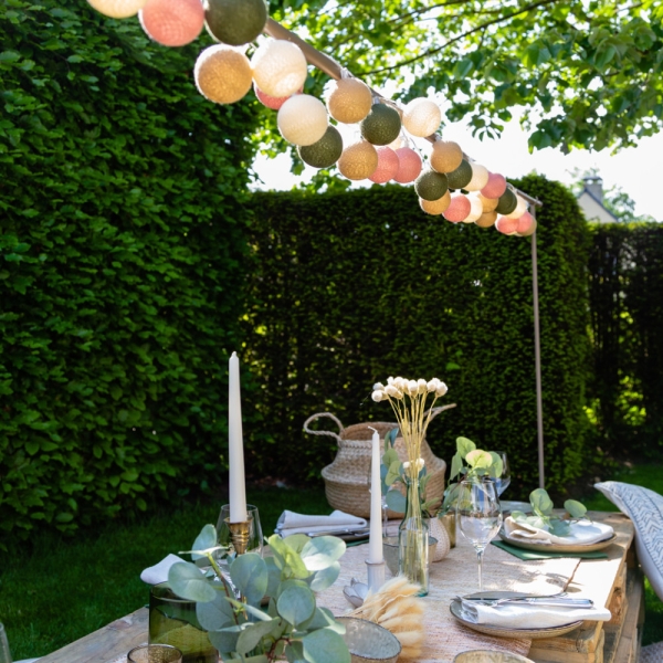 Hang de Cotton Ball Lights buitenlichtslinger in jouw tuin of onder de overkapping en de kleurrijke balletjes creëren direct een gezellige sfeer. Ideaal voor een gezellige zomeravond of tijdens de donkere winterdagen.