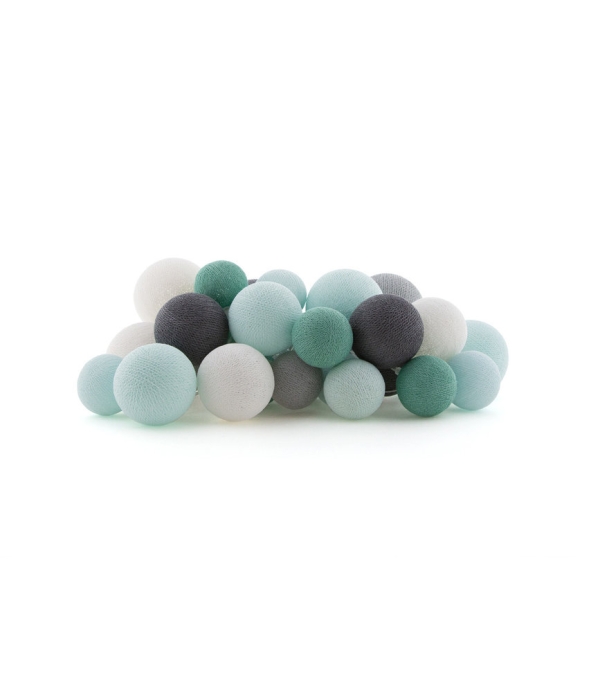 The light string is available in sizes of 20 or 35 lights. Each garland comes with 150 cm of cable without lights. The total length of the available light string sizes are 378 (20) and 558 (35) cm. The lights are spaced 12 cm apart on each light string, therefore there is enough space between the Cotton Balls. The snaps in the Cotton Balls are a thing of the past, the Cotton Balls can now be easily and quickly twisted onto the Twister light string.