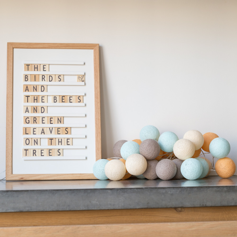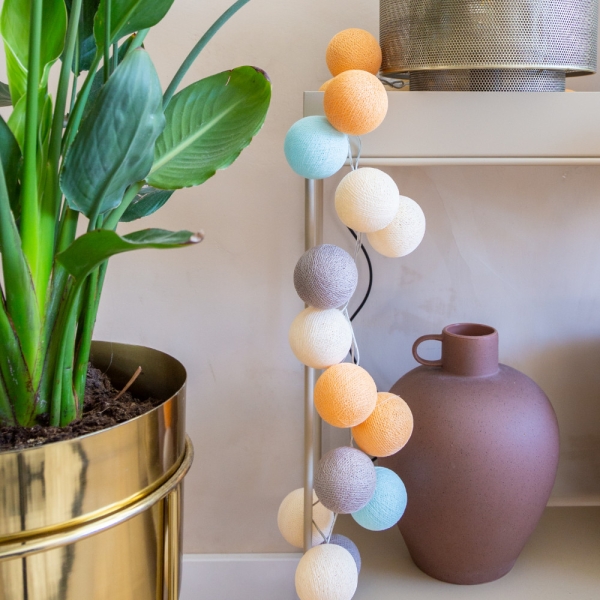A handmade light string with the unique Twister light cord! These beautiful cotton balls of light add atmosphere to any interior.